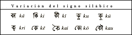 La figura inferior muestra la variación del signo silábico en la consonante k.