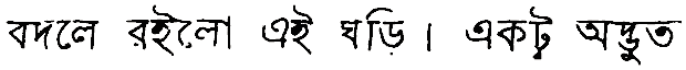 La figura inferior muestra un texto de la Biblia, Juan 3:16, en caracteres bengalíes y dialecto rangdania de la lengua rabha, hablado en Goalpara y alrededores, en norte de Assam.