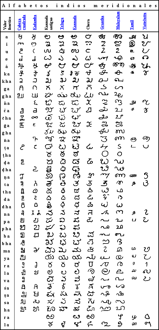 Dentro de la rama meridional de caracteres índicos, hay una central denominada "box-headed", debido a la forma tan singular que poseen. El nombre se le puso porque las cabezas de las letras se parecían a pequeñas cajas o cuadrados, que, o bien podían estar huecos, o bien llenos de tinta.