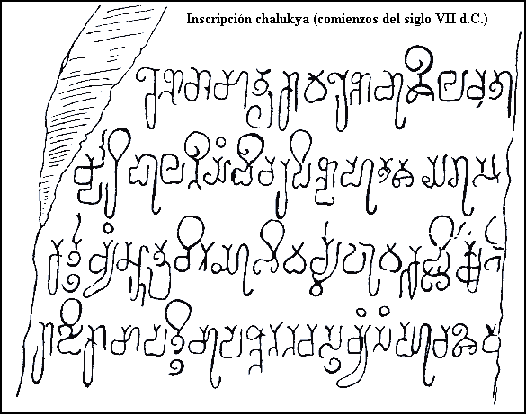 La escritura ckalukya representa una fase temprana del desarrollo de la escritura kannada y podríamos situarla entre las inscripciones kadamba y el antiguo