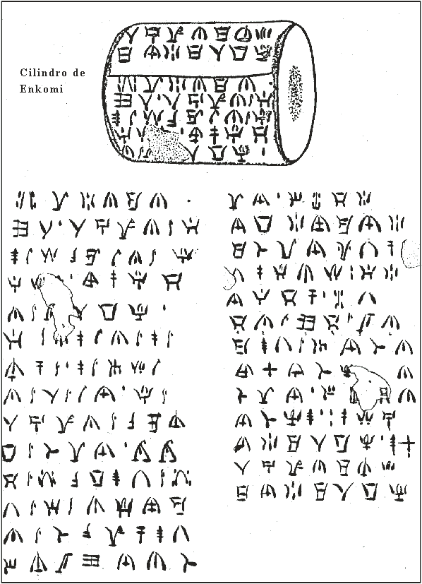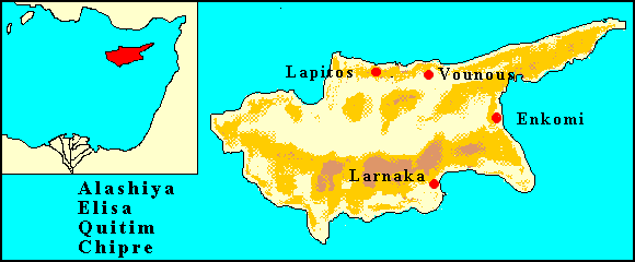Sir Arthur Evans probó que estos enigmáticos signos de la Edad del Bronce, que él llamó "chipro-minoicos" están indudablemente emparentados con la escritura lineal cretense. Es más, como la influencia cretense en Chipre se encuentra perfectamente probada en cuanto a este período, concluía que la escritura chipro-minoica era un retoño provinciano del cretense. La figura inferior es un cilindro de barro, procedente de Enkomi, con todos los caracteres que lo conforman debajo.