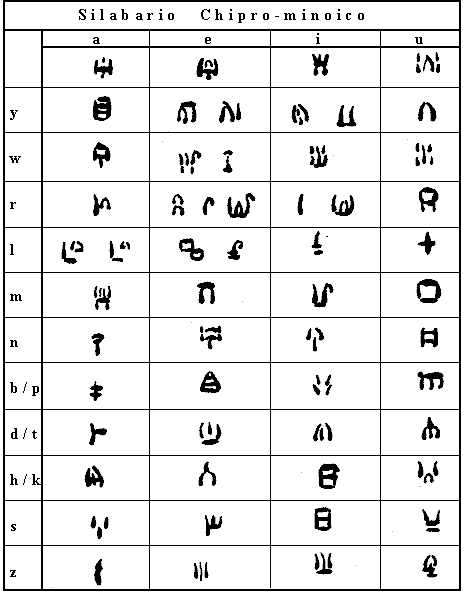 En la figura inferior tenemos el silabario chipro-minoico compuesto de 35 signos.