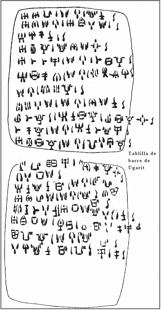 La tablilla de barro hallada en Ugarit (figura inferior) parece contener una lista de nombres personales.