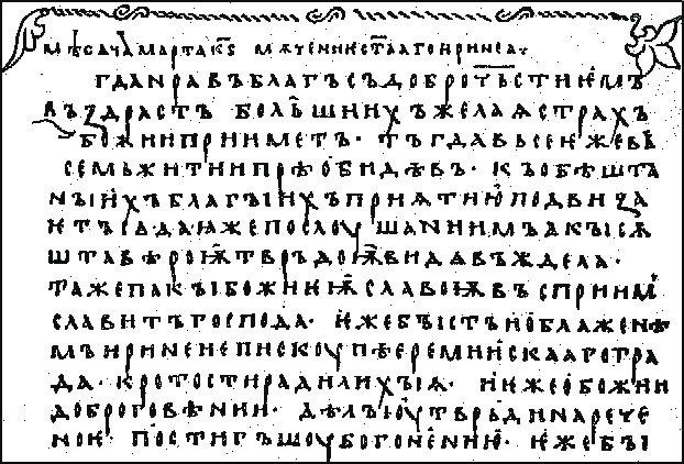 El alfabeto cirílico se convirtió, con el paso del tiempo, en el alfabeto nacional de los pueblos eslavos que aceptaron la forma de cristianismo propugnada por Constantinopla. Los búlgaros, rusos, bielorusos, serbios y ucranianos, además de otras minorías, lo usan hasta el día de hoy. Naturalmente las formas arcaicas de las letras sin algo diferentes a las actuales. Las dos figuras inferiores muestran el alfabeto y el evangelio de San Juan 1:1-8 en ese tipo de letra.