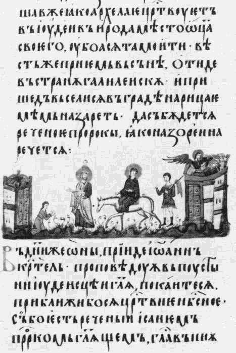 La figura inferior muestra una página de los cuatro evangelios hechos entre 1355-1356 para el zar Iván Alejandro de Bulgaria.