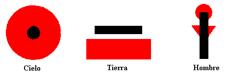 En cuanto a la forma de las vocales tienen un origen distinto. Cada vocal está diseñada por uno o más de los tres elementos (figura inferior), Cielo, Tierra y Hombre.