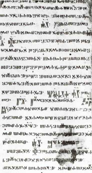 La figura inferior muestra un ejemplo de glagolítico croata; se trata de una porción del Stabat mater del misal romano. La traducción es la siguiente: