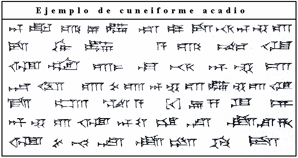 árabe, hebreo, arameo, etc. Tuvo tres dialectos: acadio arcaico, babilonio y asirio; por lo tanto, todo lo escrito en babilonio y asirio puede igualmente ser escrito en acadio. Cada una de esas variantes tienden a hacer ligeras modificaciones del sistema cuneiforme, aunque todos los libros los tratan como un solo sistema.