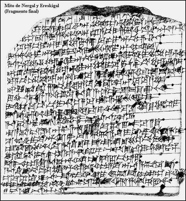 La figura inferior muestra el fragmento final del mito de Nergal y Ereshkigal;
