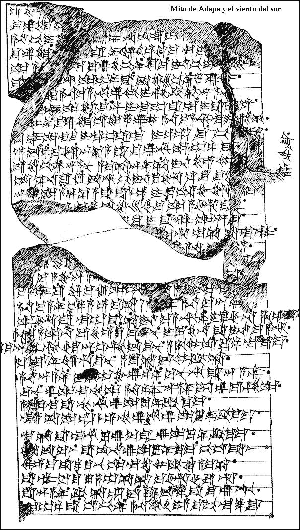 mito de Adapa y el viento del sur. En este relato Adapa, uno de los siete sabios
