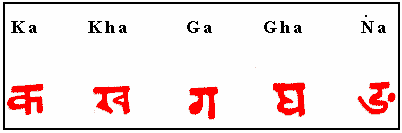 La figura inferior muestra el mismo texto, en caracteres devanagari y lengua nepalí, hablada en Nepal.