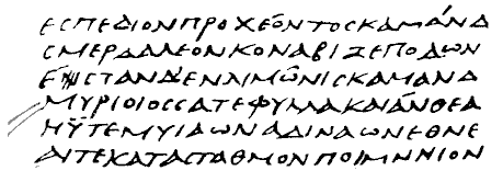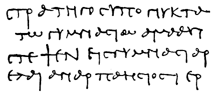 De la extensión de su uso nos puede dar una idea el graffiti de la figura inferior; se trata de un tosco dibujo acompañado de unas palabras en griego. El texto dice: Alexamenos adora a su dios y el dibujo representa la figura de un asno crucificado al cual una persona da culto. Se trata de una mofa de los paganos hacia la fe cristiana. Pues bien, este graffiti fue hecho en Roma en el siglo III d. C., lo cual muestra el uso popular que el griego tenía incluso en la capital del Imperio.