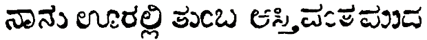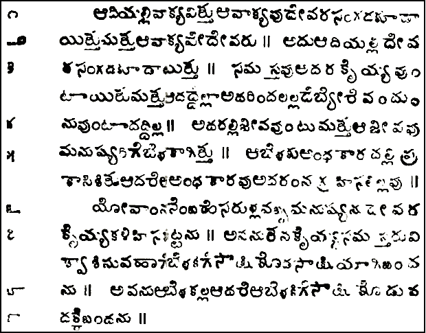 La figura inferior muestra un texto de la Biblia, Juan 3:16, en caracteres kannada y lengua tulu.