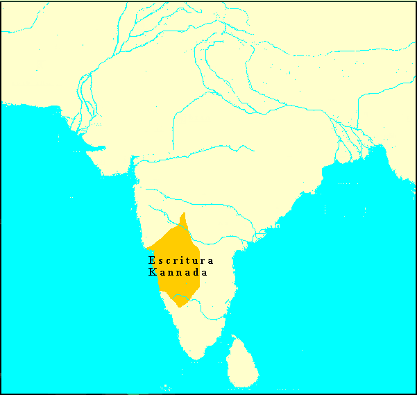 El kannada deriva del brahmi a través de un sistema de escritura transicional que produjo también el telugu.