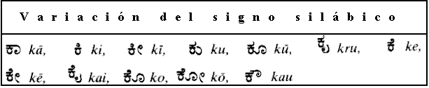La figura inferior muestra la variación del signo silábico en la letra k.