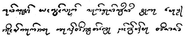 La lengua khamti se habla todavía en el este de Assam y en la región china de Khamti Long, aunque el lugar de origen de la población khamti hablante es en Birmania septentrional. Al contrario que sus vecinos ahoms, los khamti han conservado su lengua shan. Esta lengua contiene sólo 3 o 4 tonos. Los khamti son la tribu thai septentrional más culta. La escritura khamti es una variedad de los caracteres shan. Está compuesta de 33 signos (16 vocales y 17 consonantes), y aunque el carácter no es tan completo como el antiguo ahom, contiene las letras y y w. Todas las consonantes que faltan en los caracteres shan, también están ausentes de la escritura khamti y en cuanto a las vocales, no sólo falta la e larga, como en shan, sino también la a larga. Existen dos variedades principales de escritura khamti: la cursiva, cuya característica principal es el punto negro dentro de las letras (figura inferior),