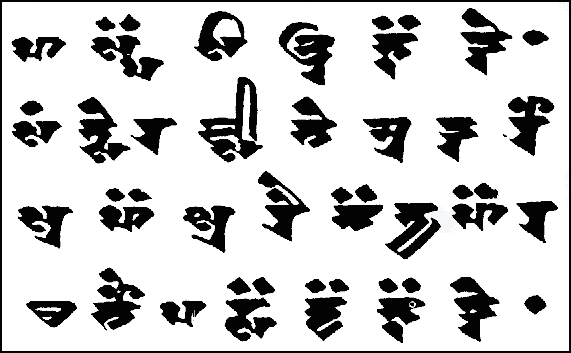 Según algunas indicaciones, el alfabeto brahmi fue adaptado a la lengua kotanesa mucho antes de los primeros manuscritos que conocemos. Pero fue una adaptación del gupta, un gupta denominado cursivo, realizada en los oasis orientales del Turquestán chino, la que finalmente cuajó. En conjunto, la forma del kotanés recuerda al jaroshti, por lo que no es imposible que éste haya influido en aquél.
