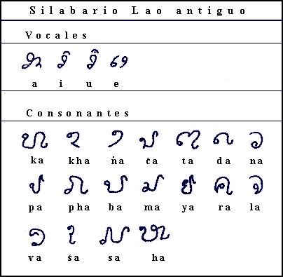 El sistema de escritura laosiano, el tua lao, nace en el siglo XVI después de Cristo. Antes de esa fecha, el sistema tham (<pali dhamma), fue usado para escribir los textos religiosos en la lengua lao.
