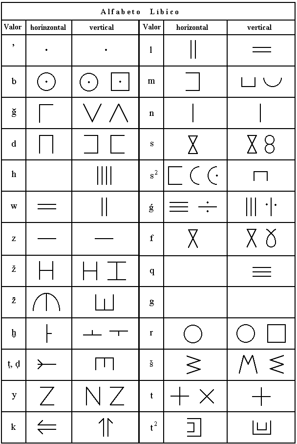 En la figura inferior se puede apreciar el alfabeto líbico.