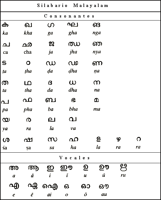 La escritura malayalam pertenece a la familia índica meridional, como el grantha y el tamil.