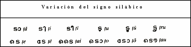La figura inferior muestra un ejemplo de variante silábica en la letra t.