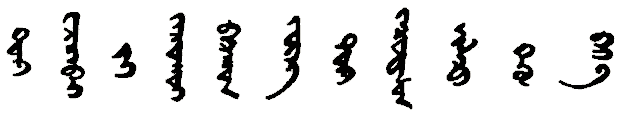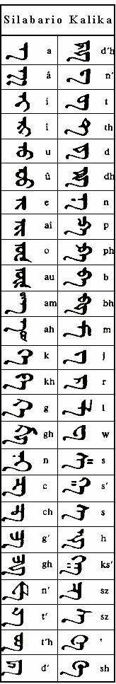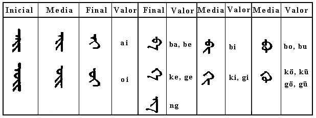 Debajo tenemos el alfabeto mongol y a la derecha el silabario kalika del cual procede.