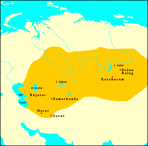 Los mongoles no tuvieron un papel destacado antes del siglo XIII d. C., cuando Temujin (Gengis Khan) unió Mongolia y en unos años su dominio se extendió desde Corea hasta Rusia meridional. La lengua mongola pertenece a la familia altaica, hablándose en territorios que van desde la Gran Muralla china hasta el río Amur y cruzando el desierto de Gobi hasta las montañas Altai. Los tres principales dialectos: jalja, kalmuko y buriato, no difieren mucho entre sí.