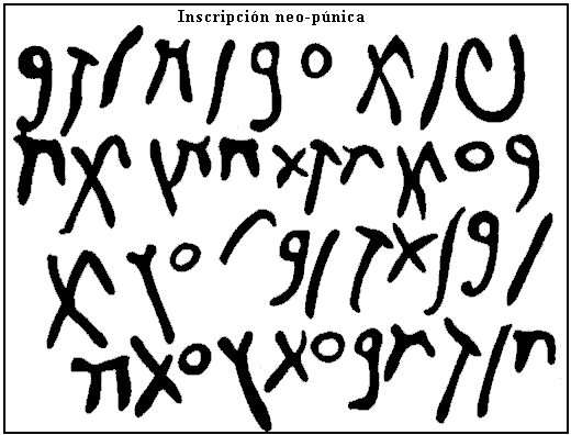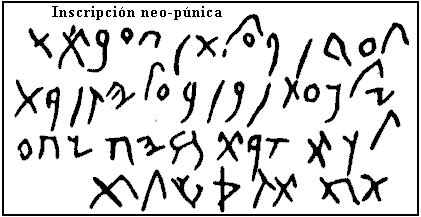 La tabla inferior recoge la evolución del alfabeto fenicio hacia las formas púnicas y neopúnicas.