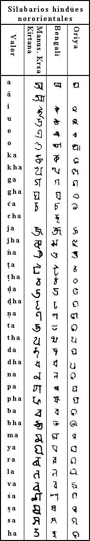 1. Una llamada brahmani, usada sobre todo en manuscritos de hojas de palma; debe su nombre a los brahmanes de Orissa, quienes generalmente escriben los sastras u obras religiosas.