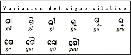 La figura inferior muestra un ejemplo de variante silábica, en este caso con la letra g.
