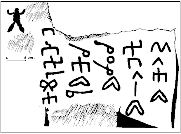 La figura inferior muestra una arcaica inscripción en columnas verticales.