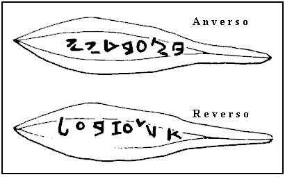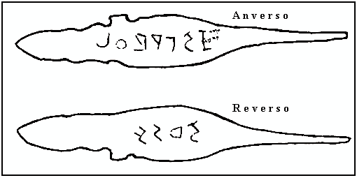 La figura inferior presenta otra punta de flecha, inscrita por la dos caras y con la siguiente lectura: