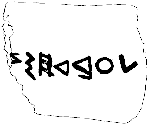 En Tel Nagila se descubrió un fragmento de jarra con una inscripción incisa antes de ser cocido. Contiene dos líneas de escritura, teniendo la segunda un divisor de palabra, cuya lectura puede ser la siguiente: