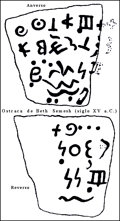 La ostraca del siglo XIII de Bet Shemes (figura inferior) y en la cual se lee: