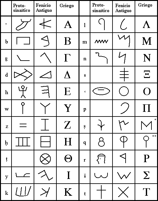 El bisabuelo de los alfabetos El proto-sinaítico fue el primer alfabeto consonántico. Incluso un vistazo superficial nos hace ver su origen egipcio. Hacia el siglo XVIII antes de Cristo la península del Sinaí estaba bajo dominio egipcio y sus pobladores semitas tomaron un cierto número de signos jeroglíficos para escribir su lengua.