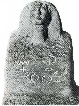 La imagen inferior muestra dos inscripciones de Serabit el-Khadim. La inscripción de la derecha dice: 'nt d t' Oh tü, adorador rb nqbmn t' (o) jefe de mineros, una ofrenda 'rkm lb'lt prepara para Ba'alat 'l 'hn d t' a favor de 'Ahena - Oh adorador - una ofrenda ' t't lbn (h') de una oveja. A favor de su hijo (ly)t' t(n d t) Eliseo(?) da, oh adorador ' t't l(b'lt) una oveja para Ba'alat.
