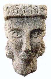 Cabeza de piedra con inscripción sabea (primer milenio a. C.)