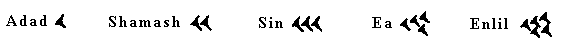 La figura inferior muestra tres nombres de divinidades sumerias; cada una de ellas comienza con el mismo símbolo que es el carácter para dios.