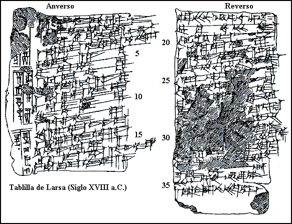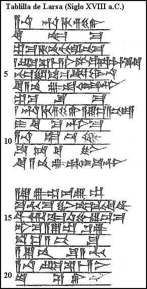 muestra una tablilla de Larsa en la época de Hammurabi. Su lectura es como
