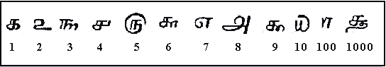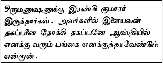 La figura inferior muestra el texto anterior en caracteres tamil y lengua tamil.