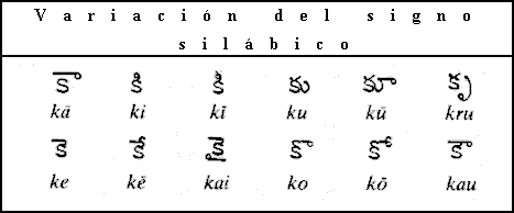 En la figura inferior vemos la variante silábica en la consonante ka.