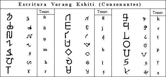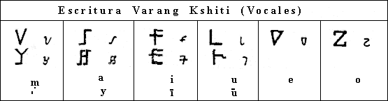 La escritura varang kshiti se usa para la lengua ho, que es una de las lenguas munda septentrionales de la familia austroasiática. Se escribe de izquierda a derecha, con los caracteres vocales en el orden que se hablan, esquivando de esa forma la complicación de la colocación de la vocal en los sistemas derivados del brahmi. La escritura tiene 10 caracteres para las vocales, sean simples, compuestas o ligaduras. La vocal inherente no siempre es pronunciada a, sino que a veces es o o e. Hay un símbolo especial para la sílaba mística om. La letra h tras una vocal indica alargamiento vocálico; la secuencia hb representa w, aunque no está claro si es v o w.