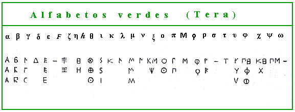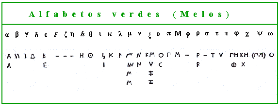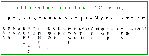 Los denominados alfabetos verdes son los más antiguos de entre los alfabetos griegos y fueron los utilizados en las islas de Creta, Melos y Tera.