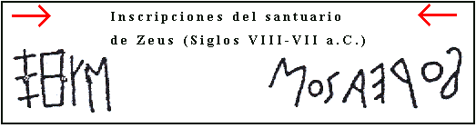 La figura inferior muestra dos graffitis del santuario de Zeus en la acrópolis de Tera. Su lectura es como sigue: