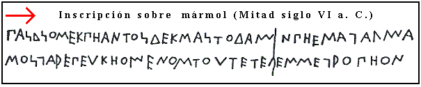 La figura inferior muestra otras inscripciones de la isla de Tera cuya lectura dice: