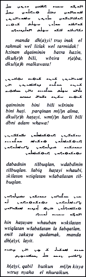 lengua aunque hay poca información disponible. En Irán viven entre 800 y 1.000 hablantes. En la zona del Khuzistán en Irán se calcula que hay 5.000 mandeos que hablan farsi occidental, mientras que los 23.000 mandeos que hay en Iraq hablan todos árabe, habiéndose desplazado a esa lengua como su lengua materna. Puede haber pequeñas comunidades en Estados Unidos (yokhananaye) y en Australia que todavía usan su lengua. Los nombres ahwaz (ahvaz) y shushtar se refieren a dialectos mandeos.