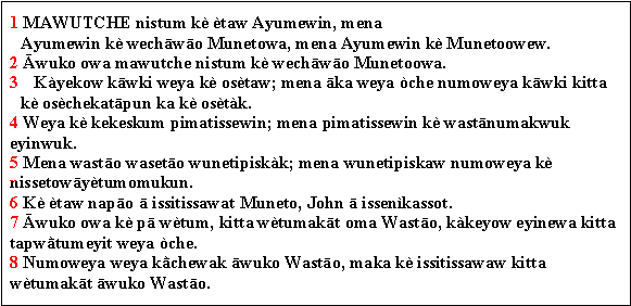 nisitonaw, 30 nistomitanaw, 100 mitahtomitanaw. Bajo la