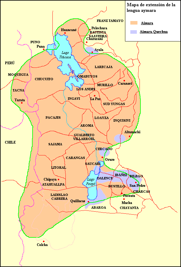 departamentos de La Paz y Oruro). La principal ciudad de habla aimara es