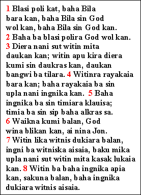 verbos miskitos acaban en -aia, habiendo sólo una conjugación. El orden de la