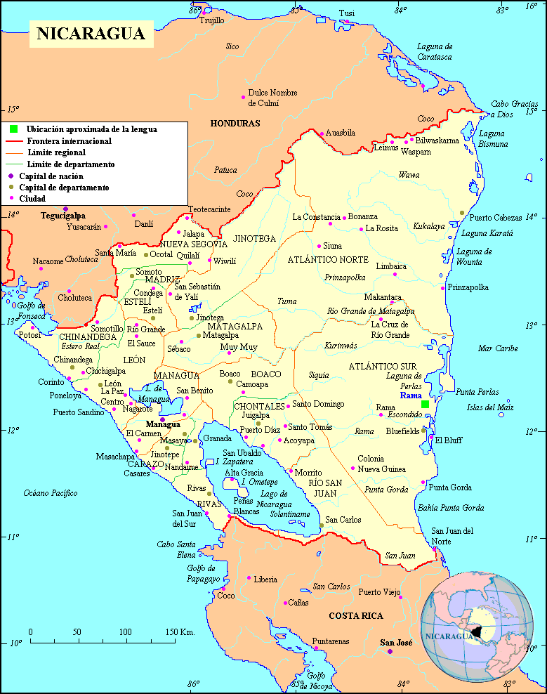 La lengua rama (boto) se localiza el sudeste de Nicaragua,